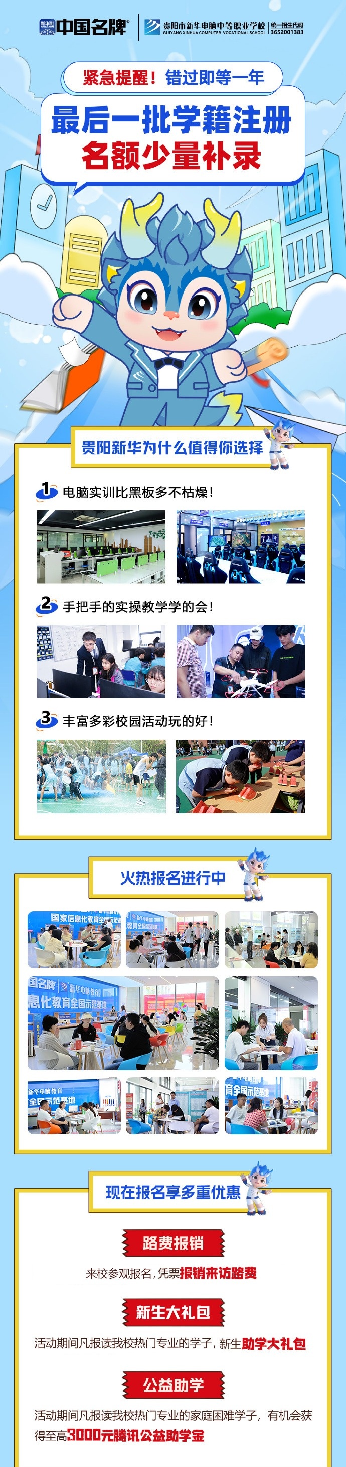 看着周围的小伙伴开启新的学习生活,你还没择校?不要惊慌,贵阳市新华电脑中等职业学校秋季最后一批学籍补录开启,各专业所剩名额不多。