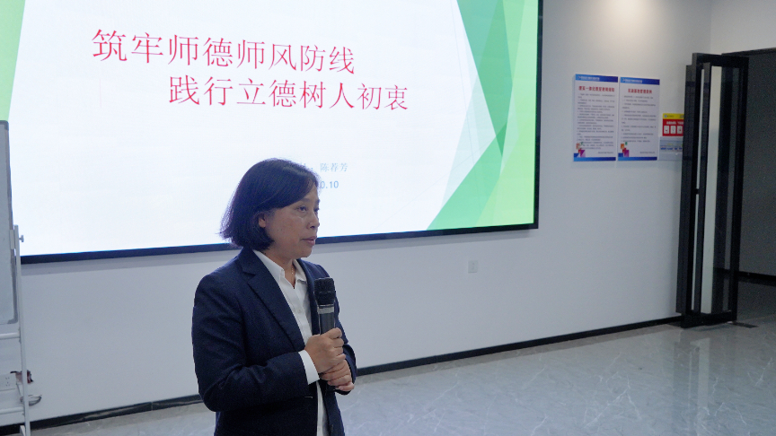 在谈到新时代背景下的师德师风时,陈顾问强调,作为一名教育工作者,要时刻保持高尚的道德情操和职业操守,以身作则、言传身教,为学生的健康成长营造良好的教育环境。同时,她还列举了违反师德师风的具体表现,如体罚学生、有偿家教、学术不端等,并分析了这些行为对学生、家长以及社会造成的负面影响。