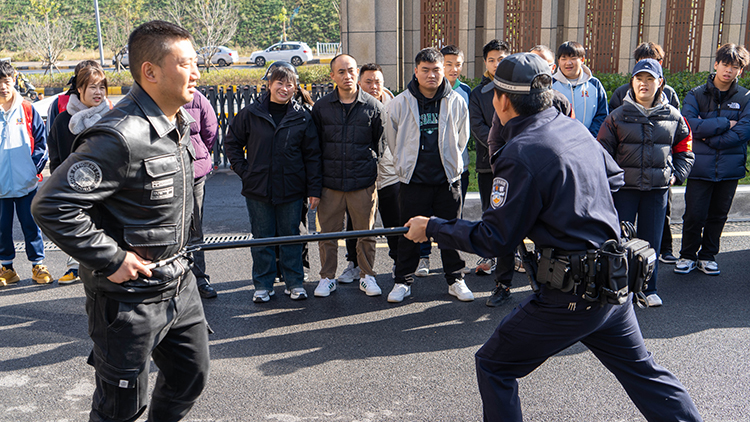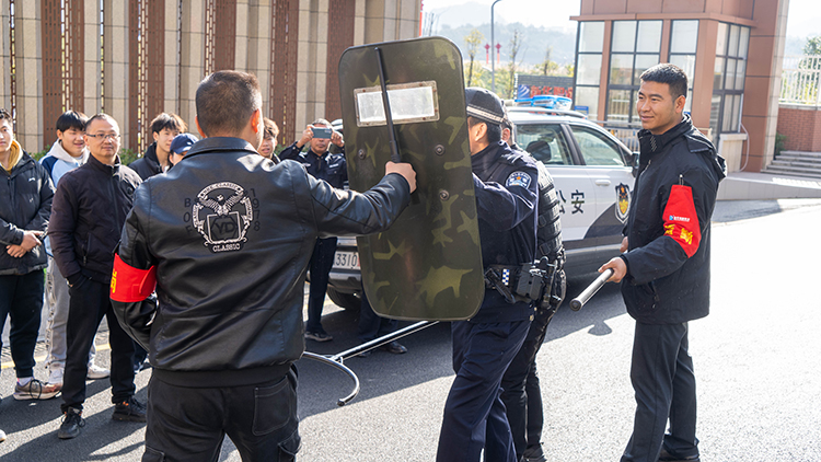 演习中,小孟派出所的民警们向师生们展示了各种安全工具的使用方法,包括警棍、盾牌、抓捕器等。他们详细讲解了这些工具的功能、特点和使用场景,并现场进行了示范操作。
